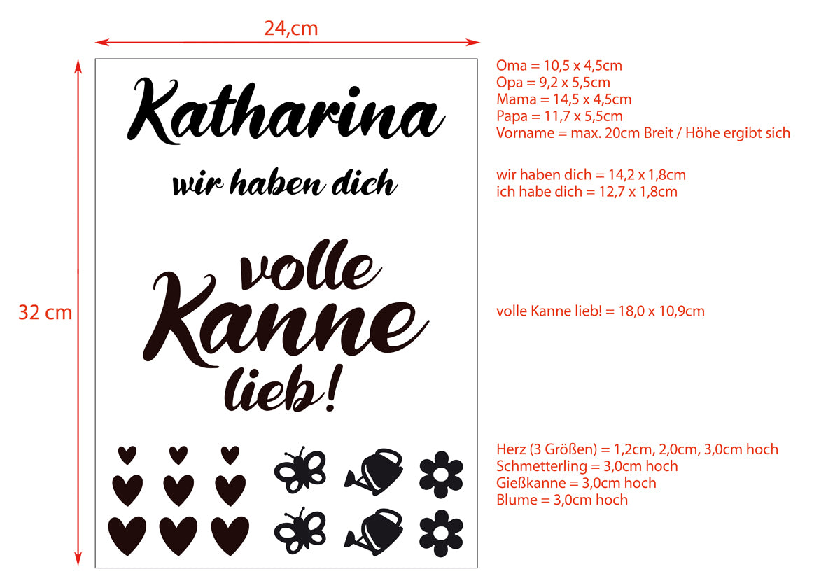 With this multi-part sticker set, you can transform an ordinary watering can into a real eye-catcher in no time at all - a very personal and useful gift for mom, dad, grandma, grandpa, your best friend, or another favorite person.