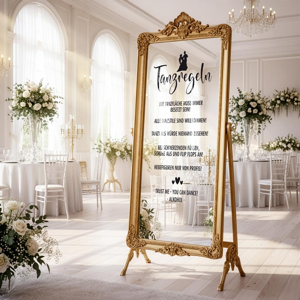 Let's dance! Show your guests how to behave on the dance floor with this decorative list. This high-quality vinyl sticker adheres to all smooth surfaces (wood, acrylic, glass, etc.) and is guaranteed to set the mood!