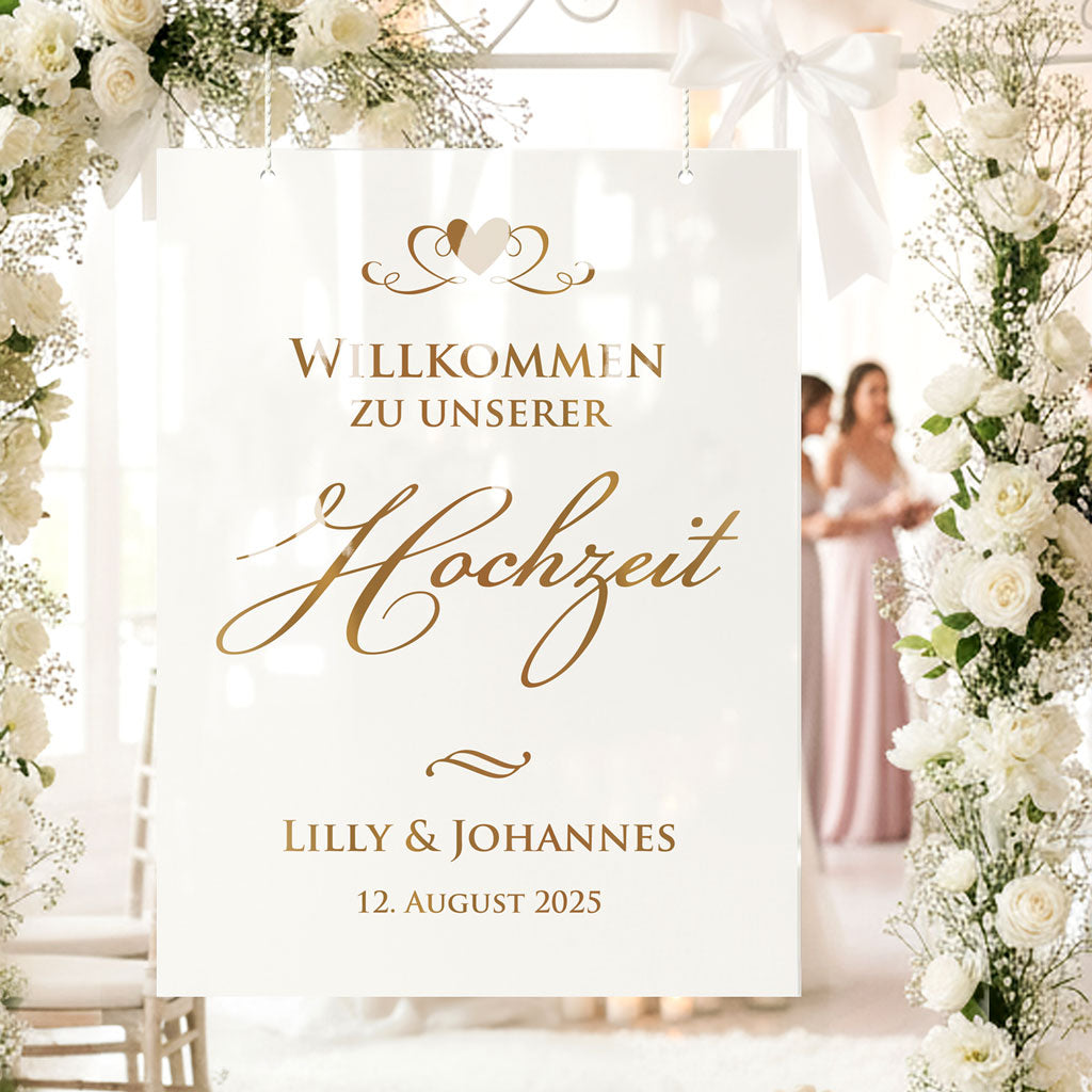 Welcome to the wedding! With this high-quality vinyl sticker personalized with your first name and date, you can create a truly beautiful highlight in no time – a personalized welcome greeting for all your guests – on a very special day.